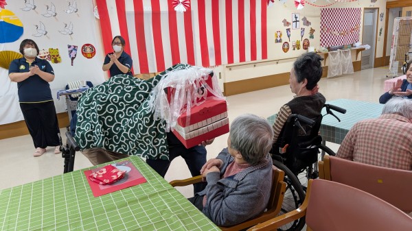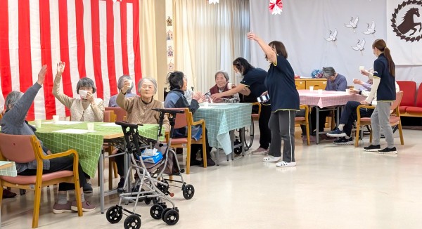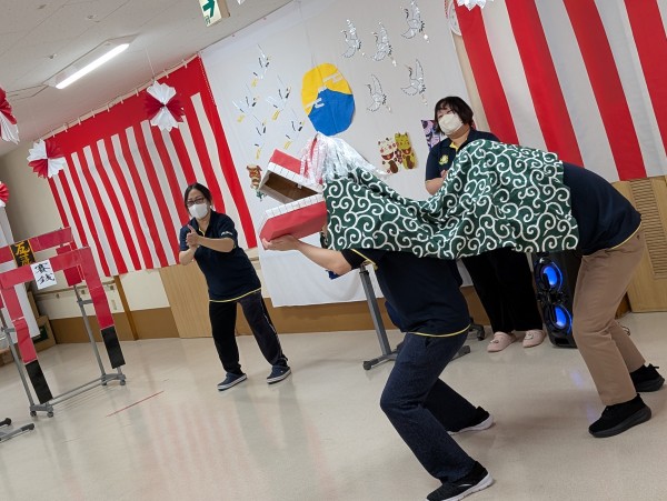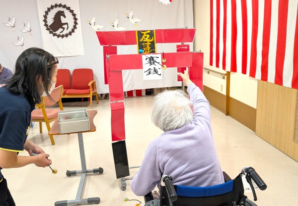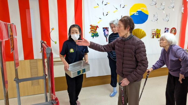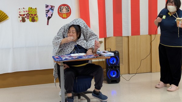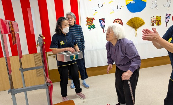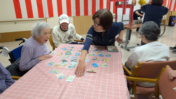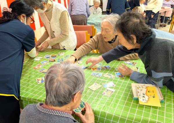 スタッフからの出し物の後は、かるた・お賽銭ゲーム・福笑いなどゲームを楽しみます(*^▽^*)