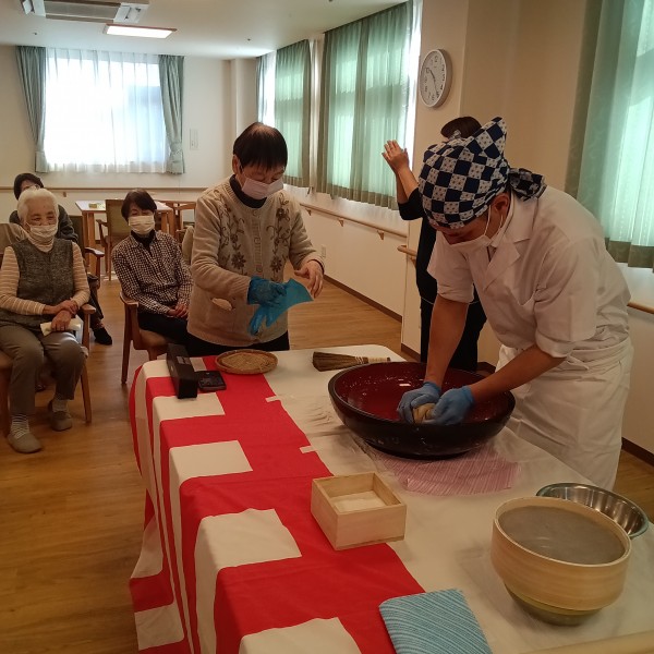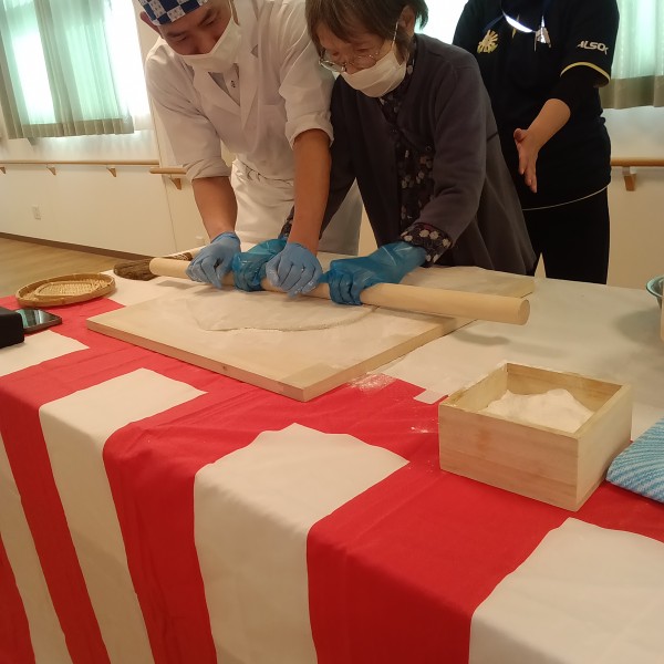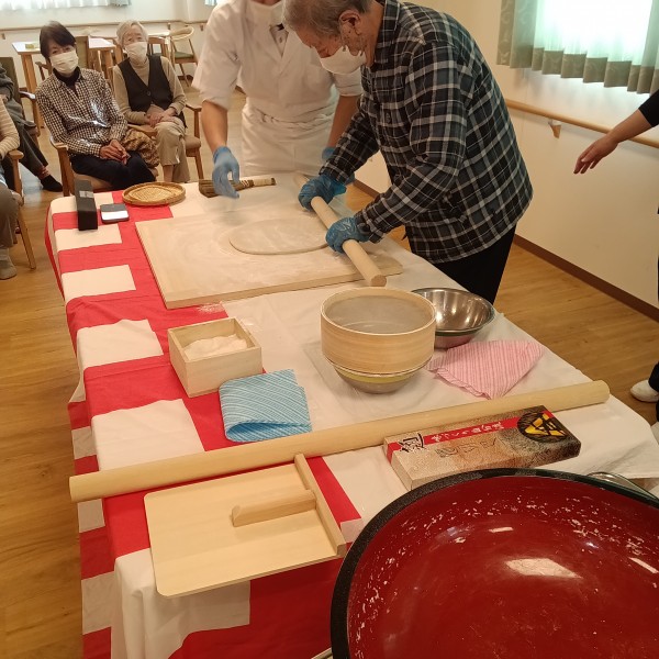 こうしてみんなで暖かく見守る中協力してお蕎麦が出来上がりました☆