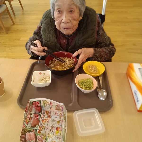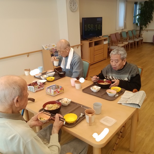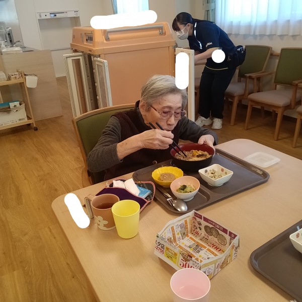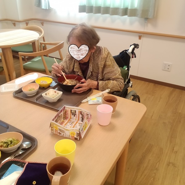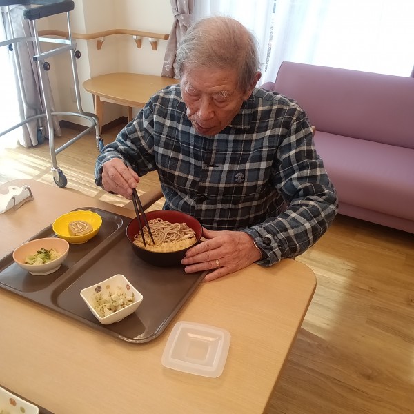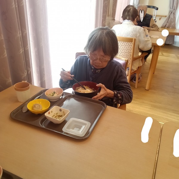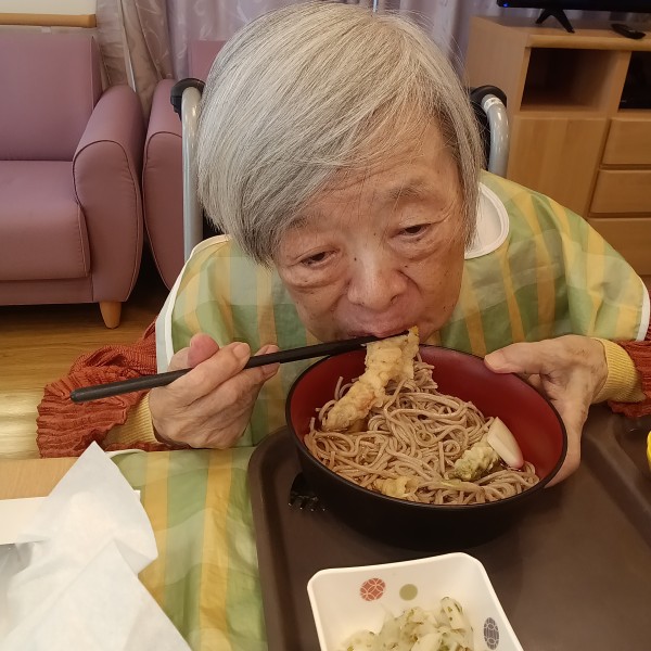 本日の昼食は温かい天ぷらそばです。
