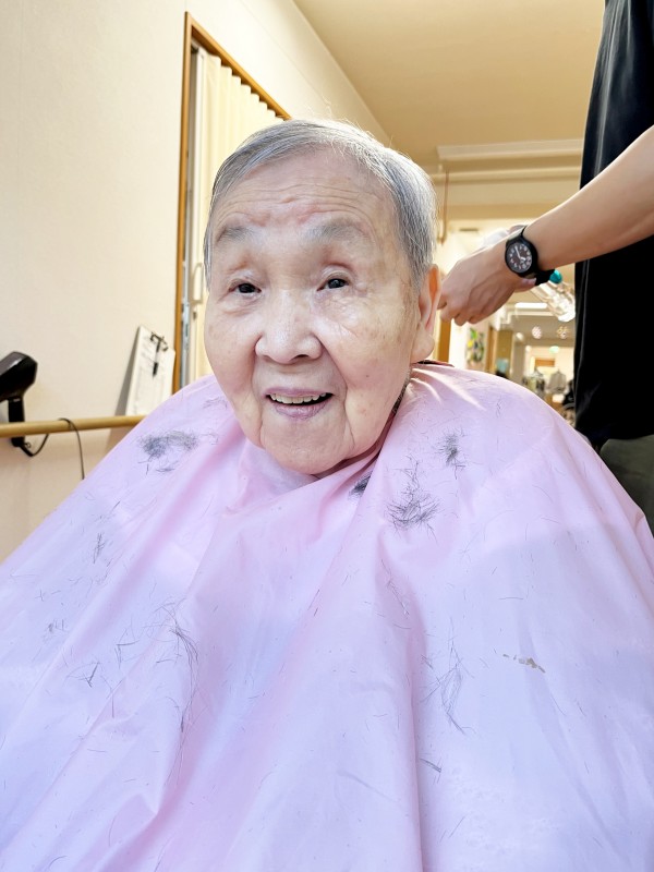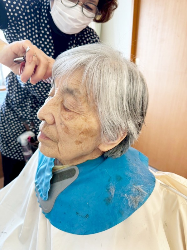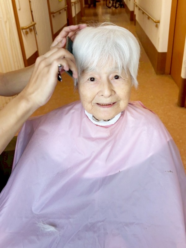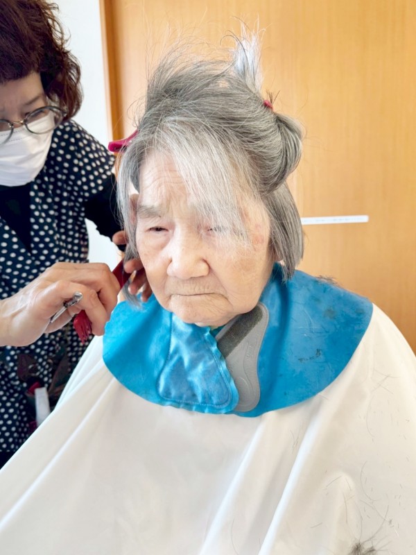 グループホームみんなの家・大宮三橋 髪を整えて、笑顔もアップ♪訪問理美容の様子