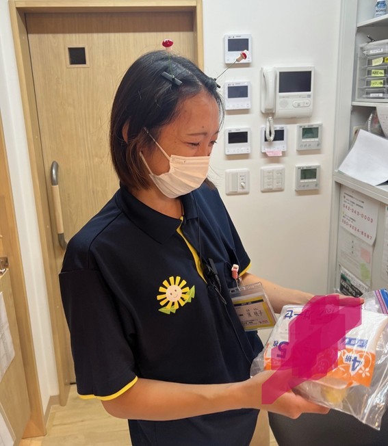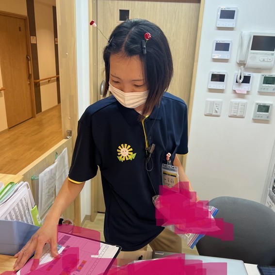 いつもニコニコ丁寧ですがお風呂介助やお掃除、リネン交換などはバリバリ行ってくれる愛されキャラです