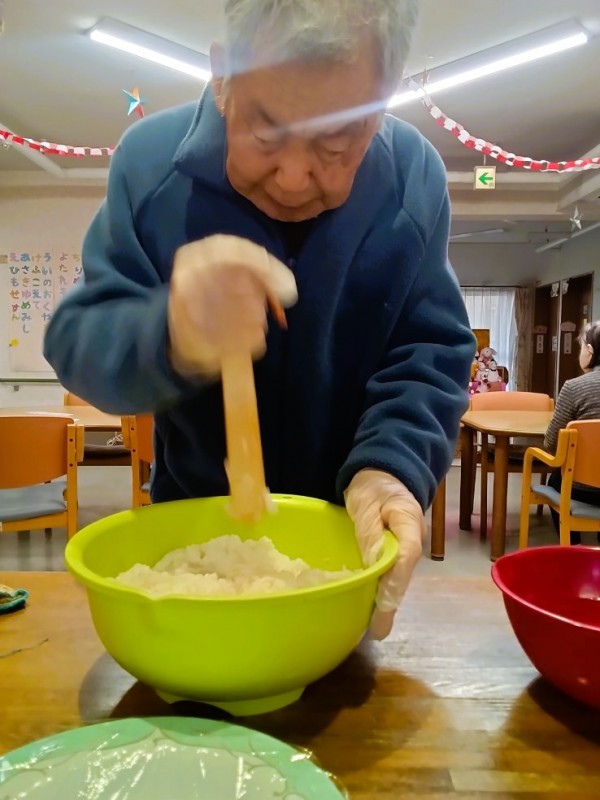 ご入居者様にお手伝いをしていただききな粉とあんこの2種類を!!