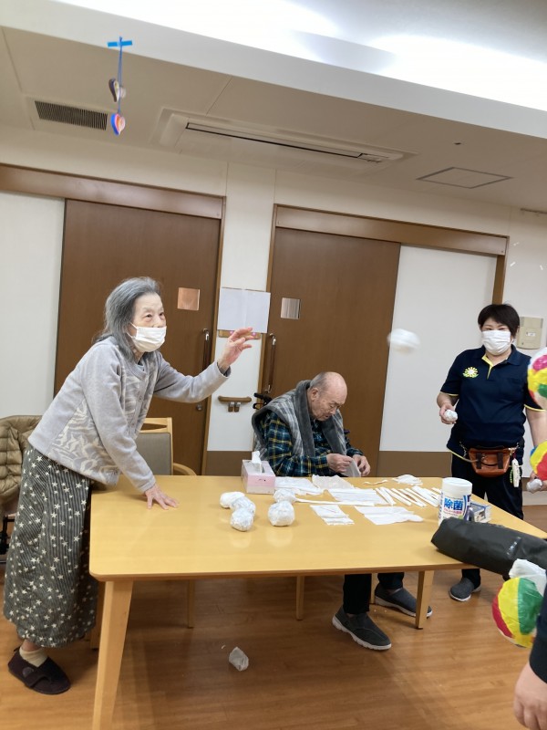 前のブログで見ていただいたように、今回は鬼の体に紙風船をつけてみました!
