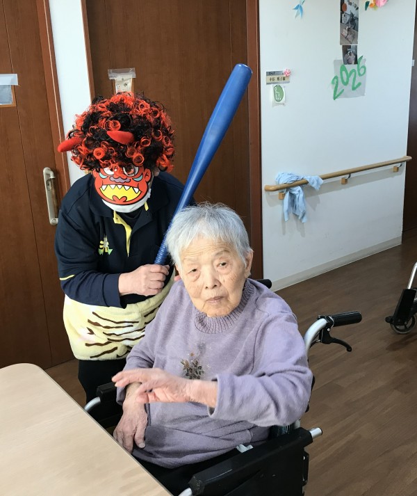 小机でも「鬼は外♬」「福は内♬」と元気にご利用者様達が職員鬼にボールを投げて退治しました(^O^)