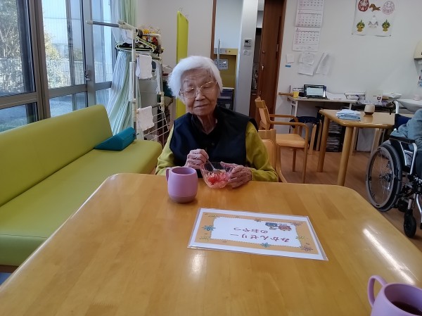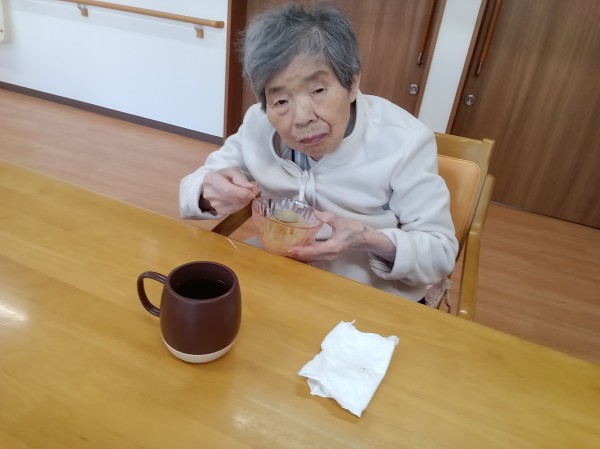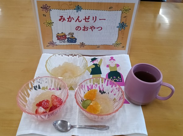 今日は節分レク(おやつ)を作りました。 みかん????ゼリーを作りました。召し上がられているご様子をお知らせいたします!!