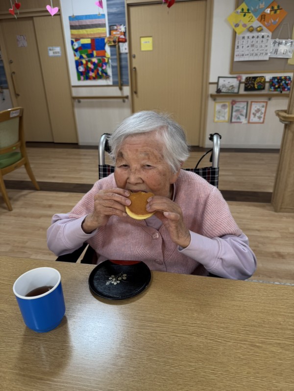 レクのおやつの大きなどら焼きも