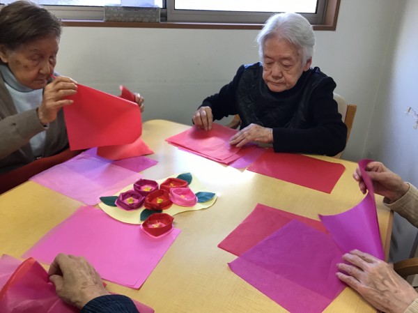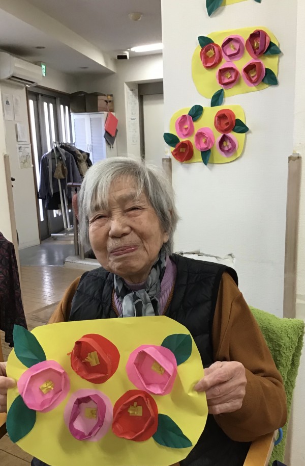 「できた出来た!!!遠くから見たら、ほんとに椿だわ」