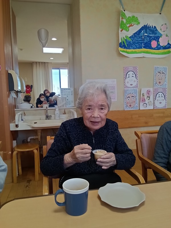 豆まきの後、おやつにはホーム長手作りの鬼プリンを召し上がって頂きました(*^-^*)