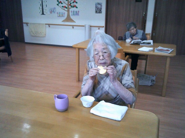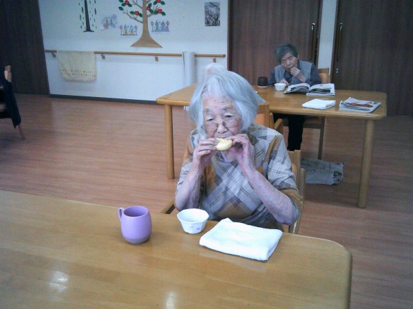 嬉しそうにお喋りされていました(*^^)v 飲み物とおやつをお持ち下さり召し上がっていいただきました。 「来たの? そうだったのかしら?」とのことでした!! 美味しいわと話されていました(*^_^*)