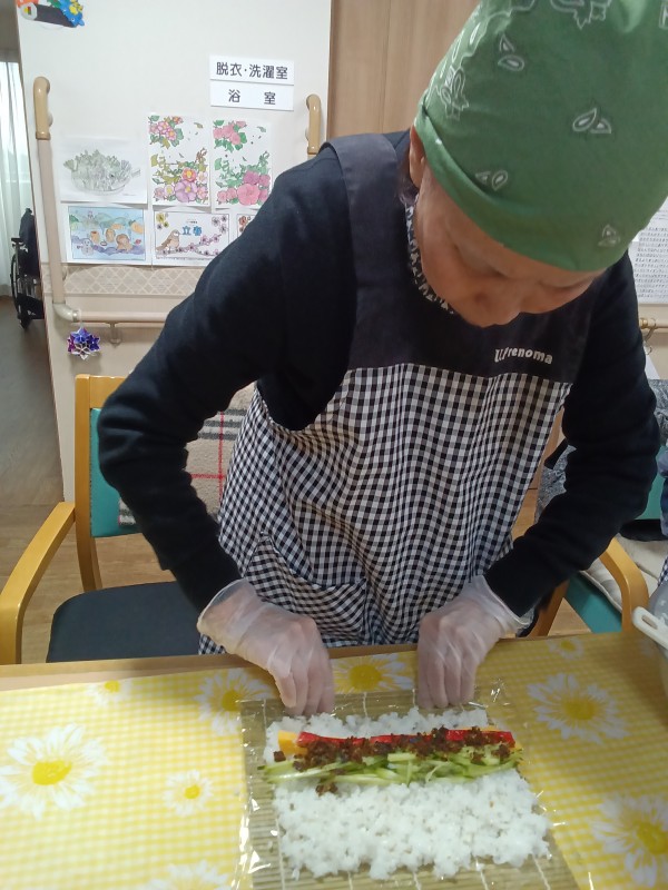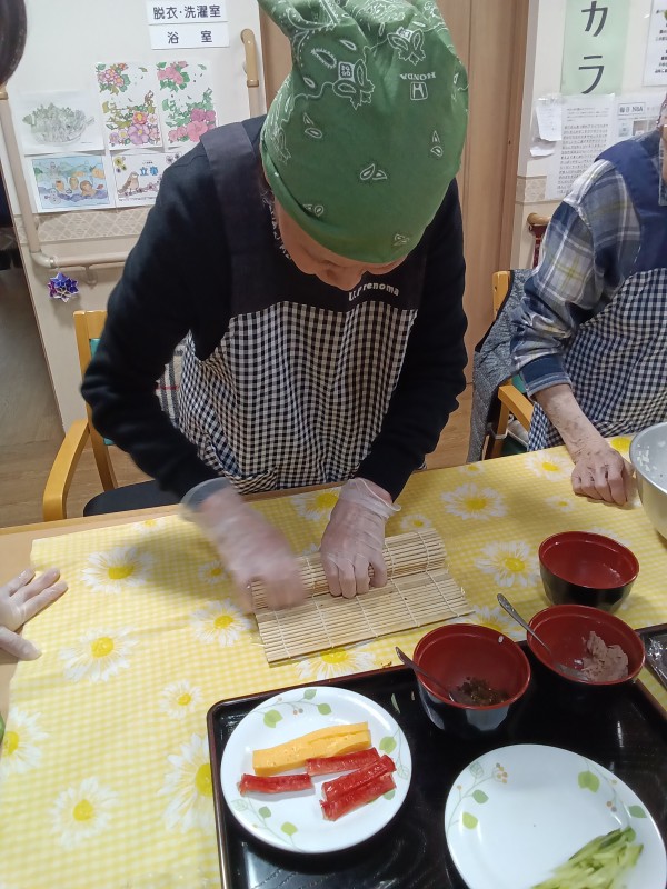 ご入居者様と太巻き寿司を作りました❣