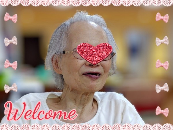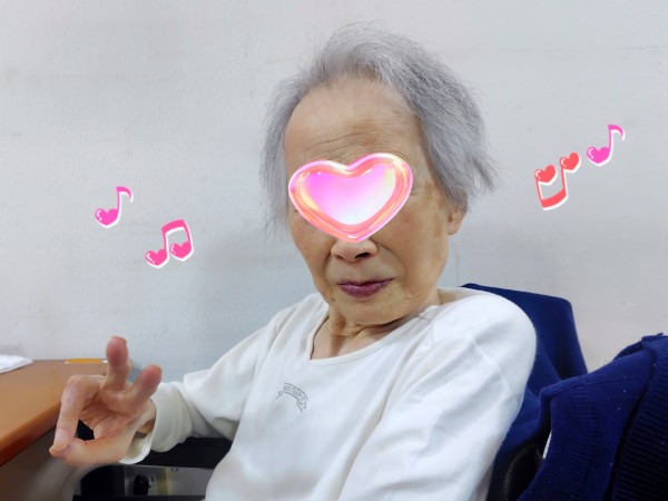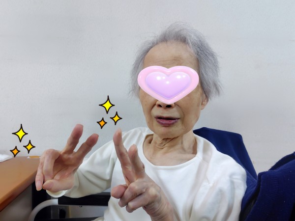 『こんなおばあさん撮ってど〜するのよ〜』照れながらも、両手でピース v(^^)v