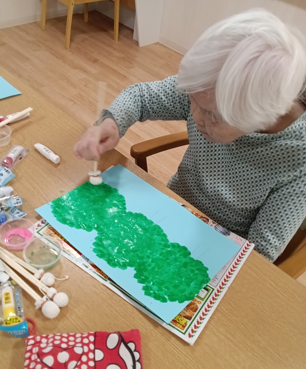 華やかな女性陣の横で、日課の塗り絵をされています。