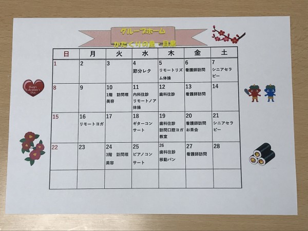 遅くなってしまいましたが、2月の行事予定表が完成しました! 2月も行事予定が盛り沢山です♬