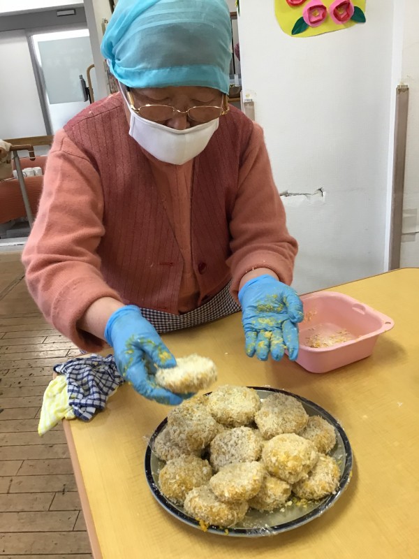 小麦粉、卵、パン粉の順につけていきましょう(*^▽^*)