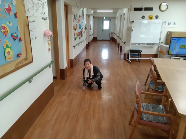 まずは歩行訓練のコースにゴミが落ちてないかのチェック。