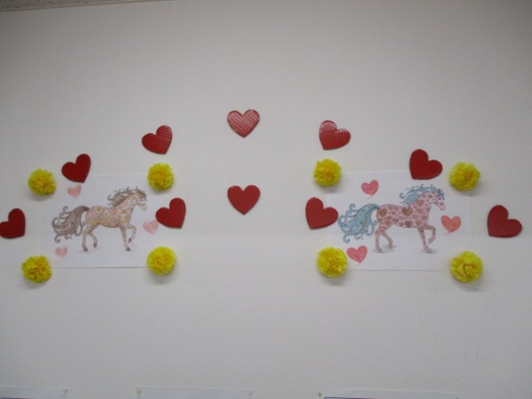 バレンタインの飾り付けのご様子です( ^ω^)・・・ お花が沢山出来ましたね!!