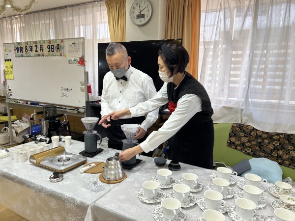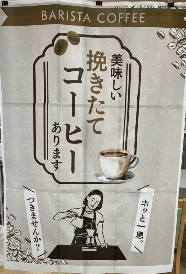 コーヒー豆を挽き始めると、コーヒーの香ばしい匂いがフロアの中に広がり