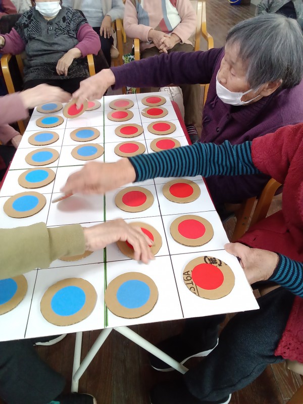 今回のレクリエーションは段ボールで道具を作り、陣取りゲームを行いました。