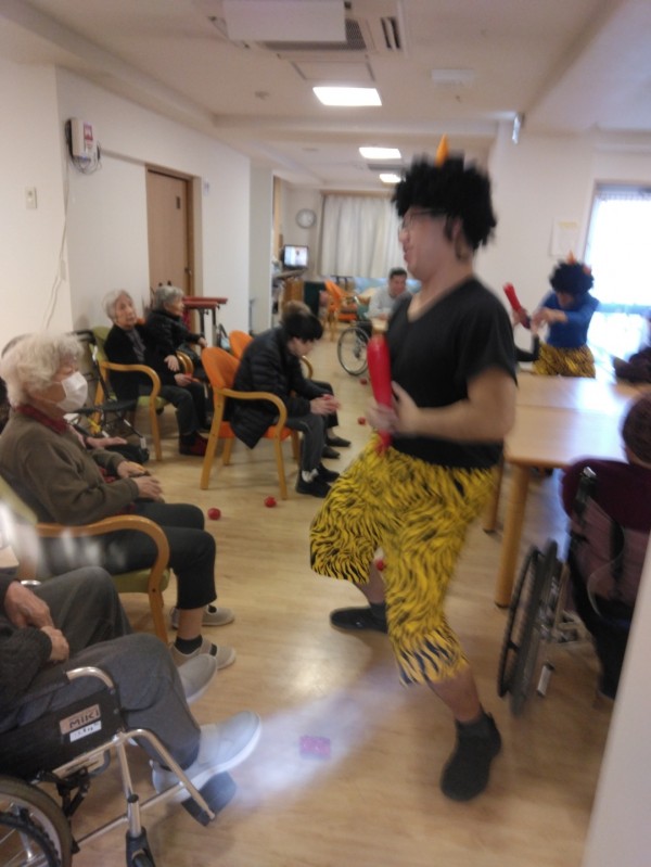 ご入居様が赤鬼・青鬼に豆を投げました。