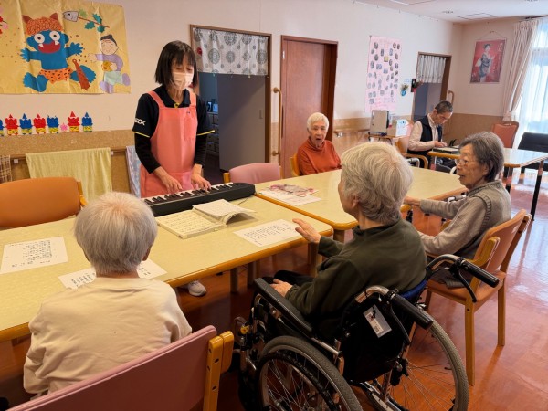 歌詞カードをじっと見つめながら、一文字ずつ大切に歌われる方、職員の手拍子に合わせてリズムに乗る方など、楽しみ方はそれぞれです。