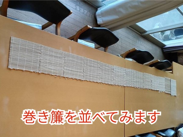 巻き簾の上にサランラップをビヨ~ンと敷き詰めます。
