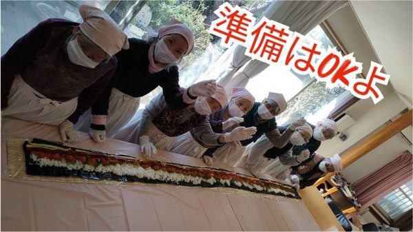 決めました。今年はみんなで「ロング恵方巻にチャレンジ!!」