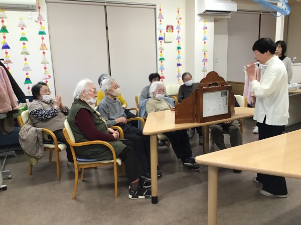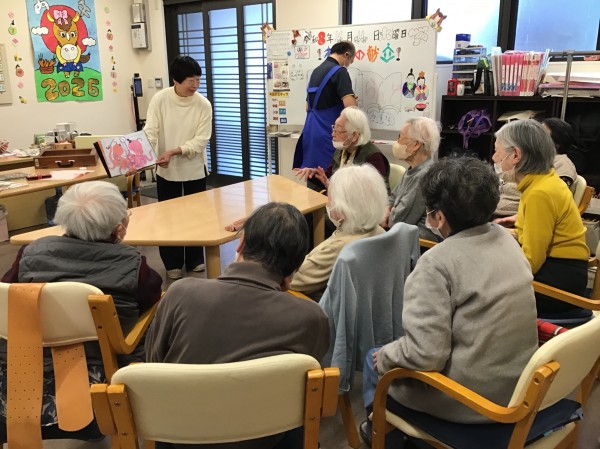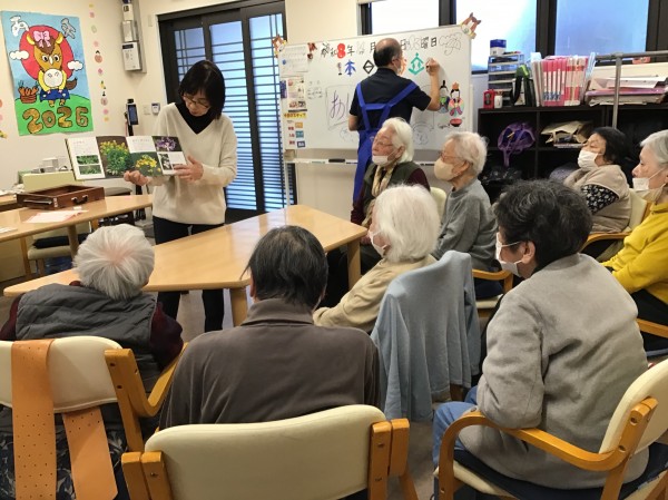 紙芝居や朗読などは、ご利用者様の皆様とても静かに真剣に聞いています。