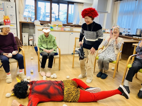 皆さん、鬼がやってきましたよ~!力を合わせて鬼退治だ!