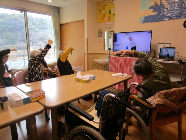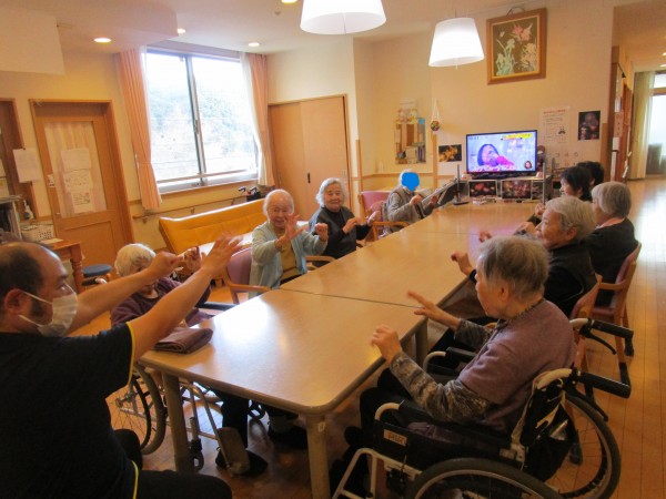 スタッフによる体操を行っています♪