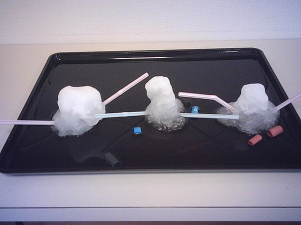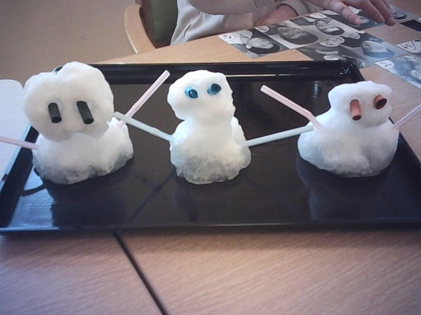 皆さんと雪だるまで遊んだ後、カルタ取りをしていたら、じきに溶けてしまいました…