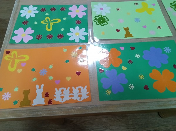 皆様のお好きな色の紙に飾りを貼っていただきました。