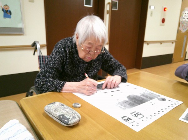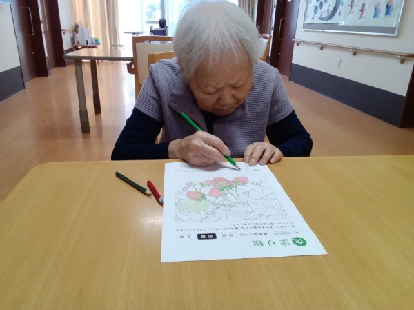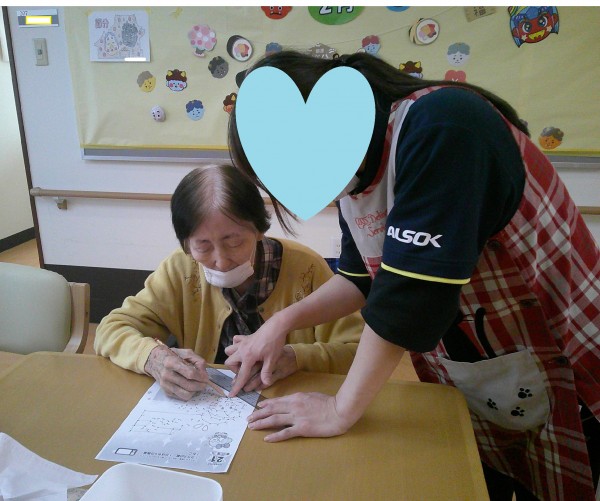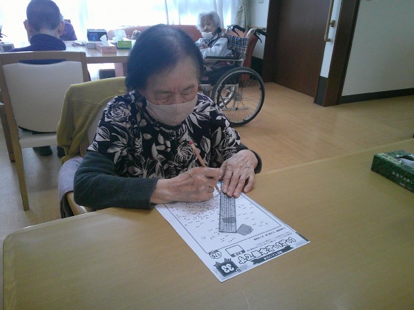点つなぎや塗り絵、文字合わせなどをして楽しまれています(*'ω'*)