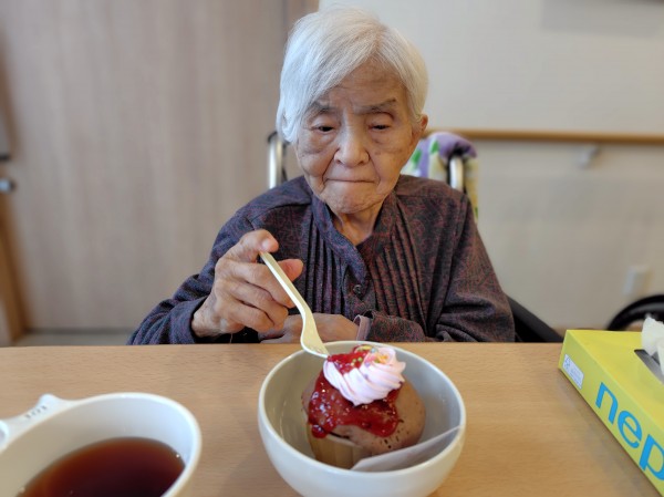 「食べていいの?」「どうぞ」 はにかみながら嬉しそうに食べてくれました