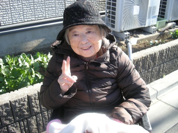 お散歩は、基本的にスタッフとご入居者様一対一で。