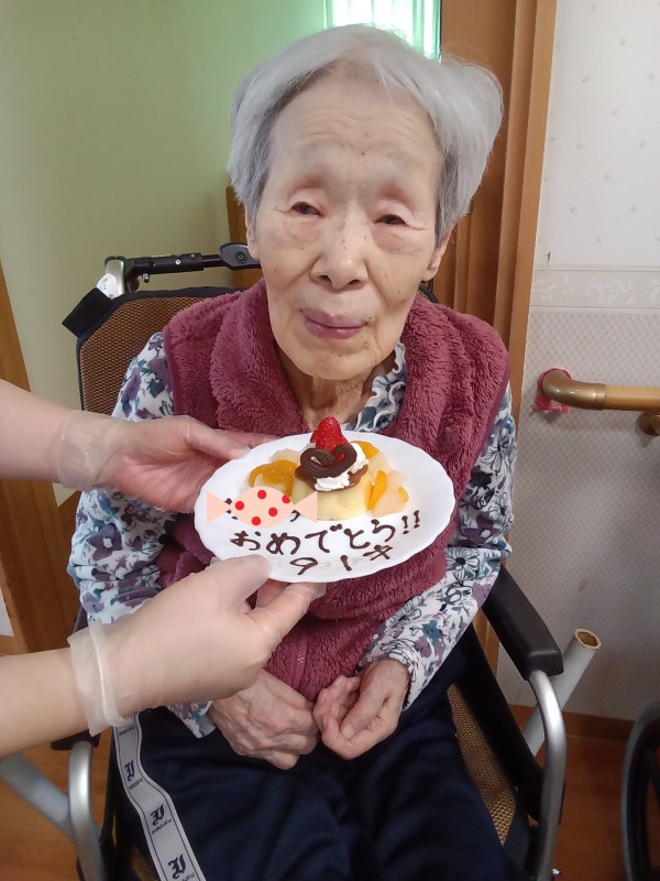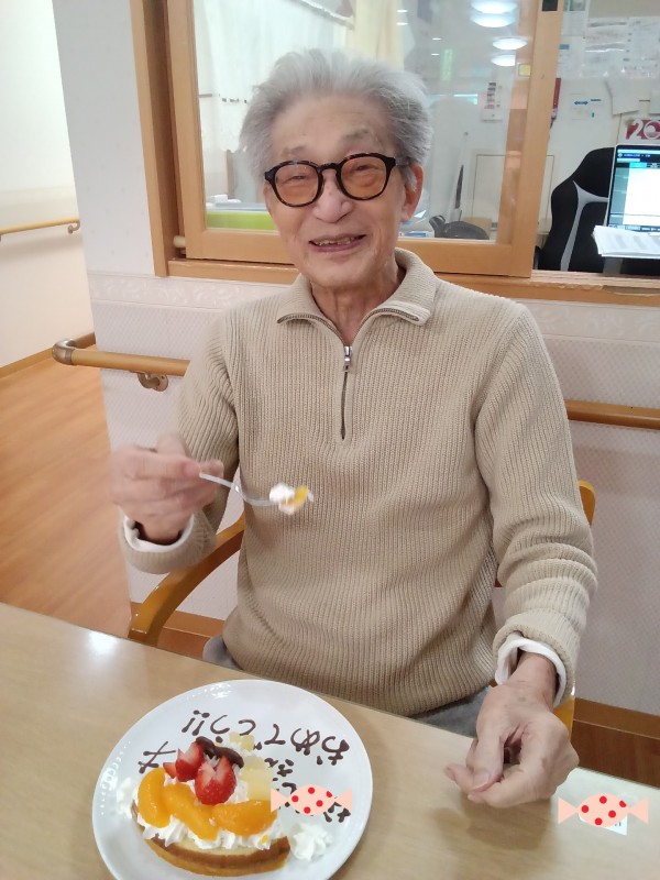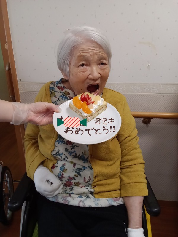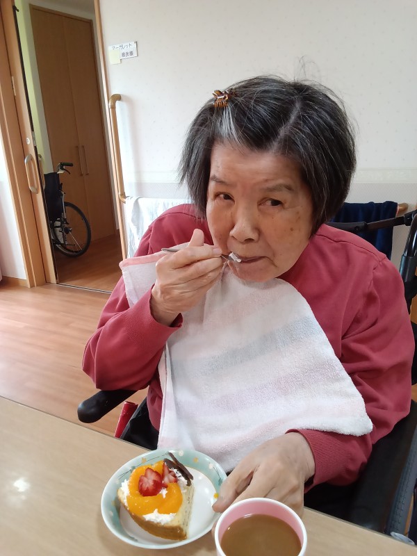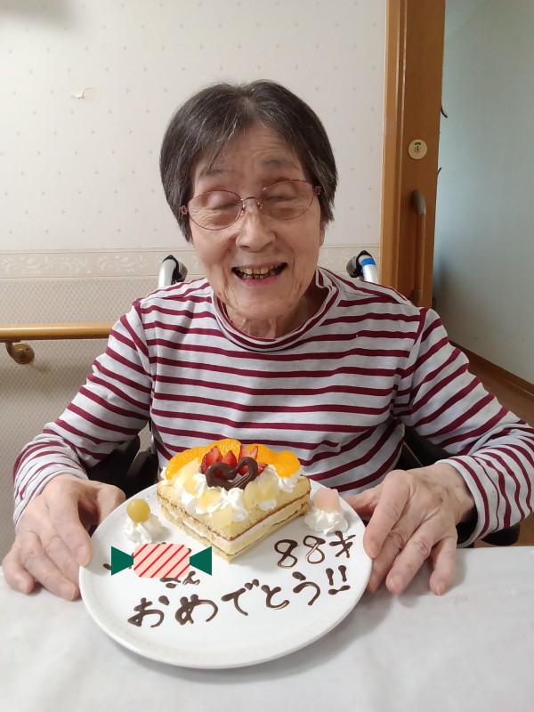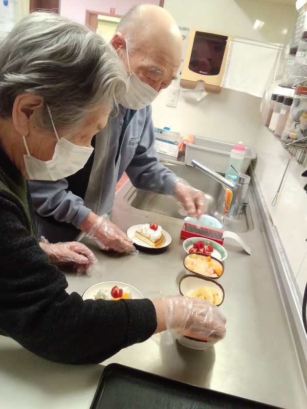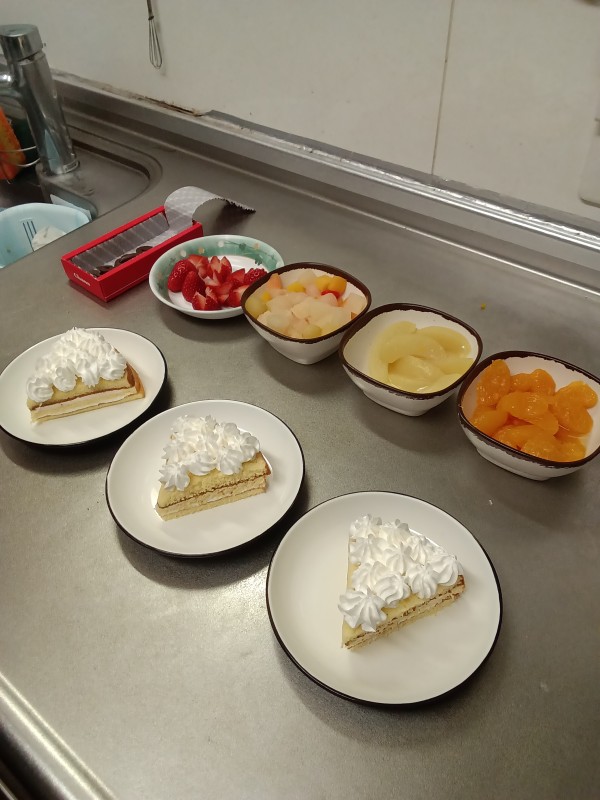 誕生日会第二弾!という事で、利用者様に手伝って頂いてケーキを作りました。