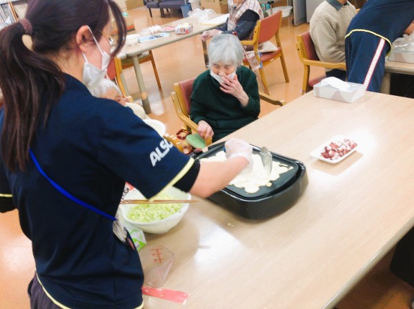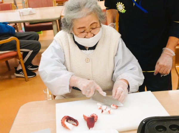 本日は「おやつ作り:お好み焼き・たこ焼きづくり」の様子をお届けしたいと思います♪