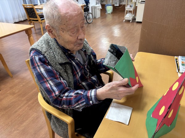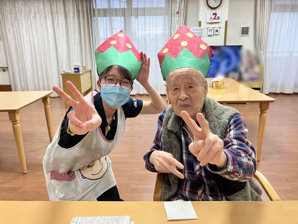 南中丸では今度のレクに向けて準備中!いちごのパフェにちなんで、かわいい帽子を作っちゃいました♡