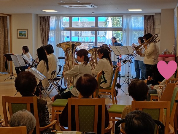 2月15日スィング・リリー様による演奏会のご様子をご紹介します。迫力のある素敵な音色に皆様引き込まれていました。どうぞご覧ください。