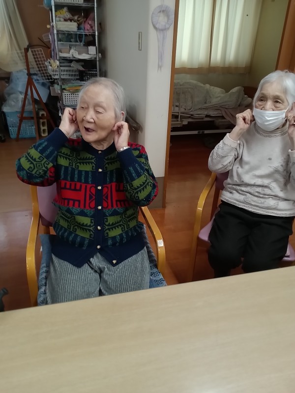 おやつの前に少し時間があったので、手指の体操と歌を歌ってからおやつとなっています。
