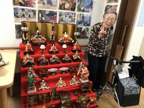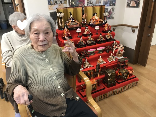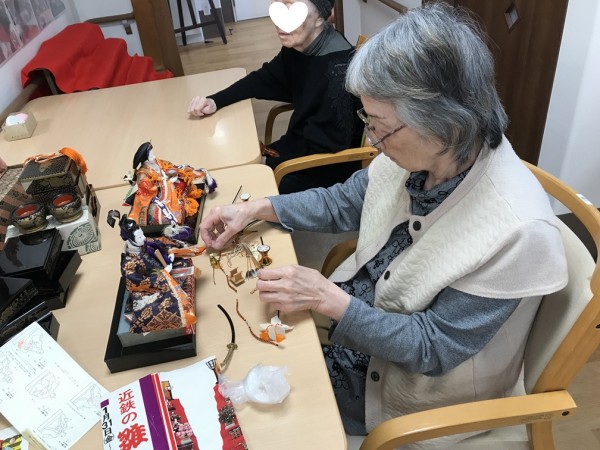 雛段の飾りつけを利用者様と行いましたよ♬ そのご様子をご覧ください!