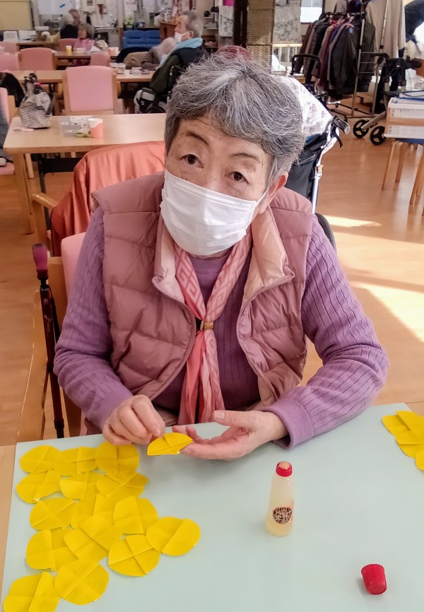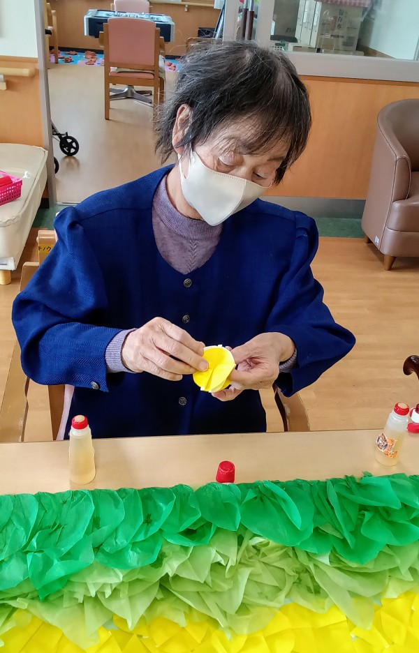 菜の花は、折り紙やお花紙を使って