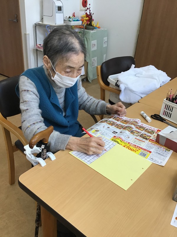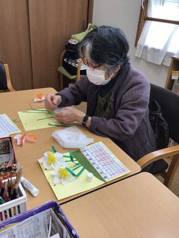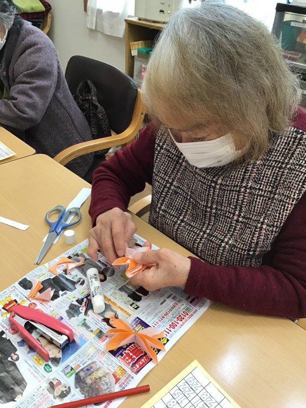 細かい作業に「難しいわね~・・」とおっしゃられる方もいましたが、職員と一緒に行うことで、完成までたどりつくことができました(*^-^*)