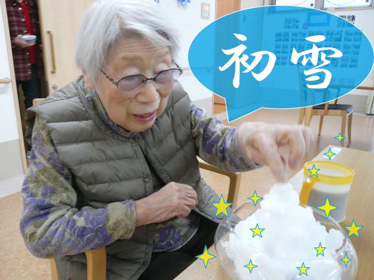 介護付有料老人ホーム みんなの家・東浦和3の入居者様にも初雪をお裾分けしました。寒々としたお外へ外出するわけにはいかないので、自らの肌で雪の冷たい感触を味わって頂ければ幸いです。
