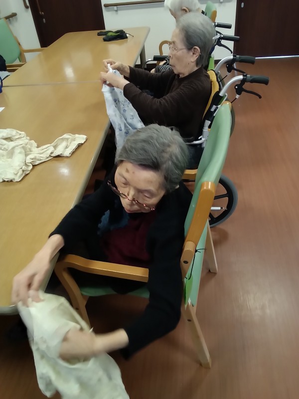 いきなり場面は変わりますが、洗濯物たたみをお願いしている時の様子です