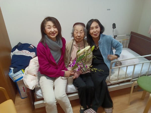 大好きなどら焼きを召し上がられて嬉しそうでした(*^_^*) 大好きな百合の花をお持ち下さりました。