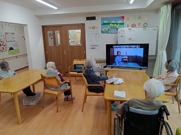 今日は1階でリモート体操(口腔ヨガ)が行われました。 そのご様子をお知らせいたします!!