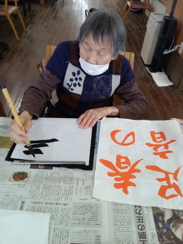 遊・菖蒲で人気の高い習字を行いました。