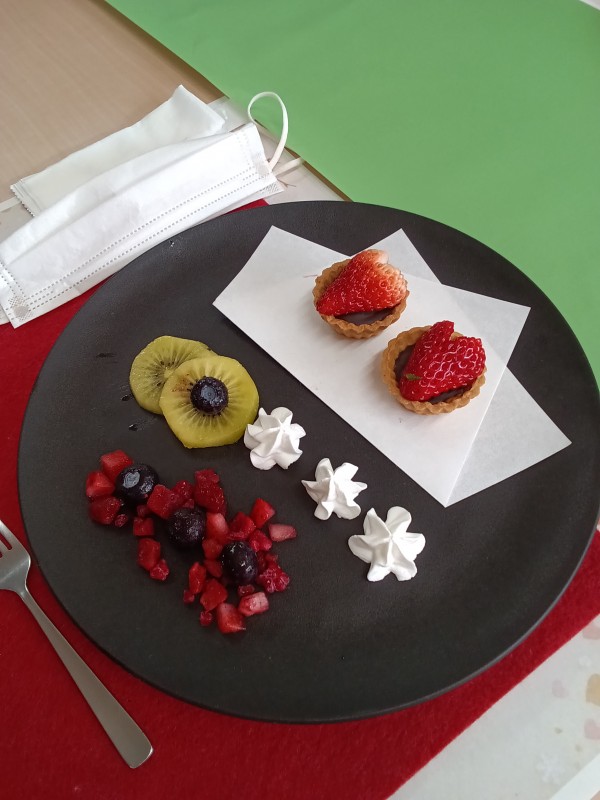 かわいいサイズの生チョコタルトにフルーツを添えて