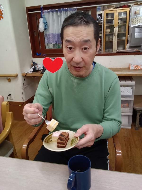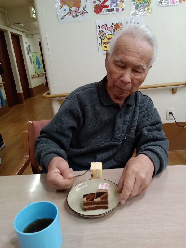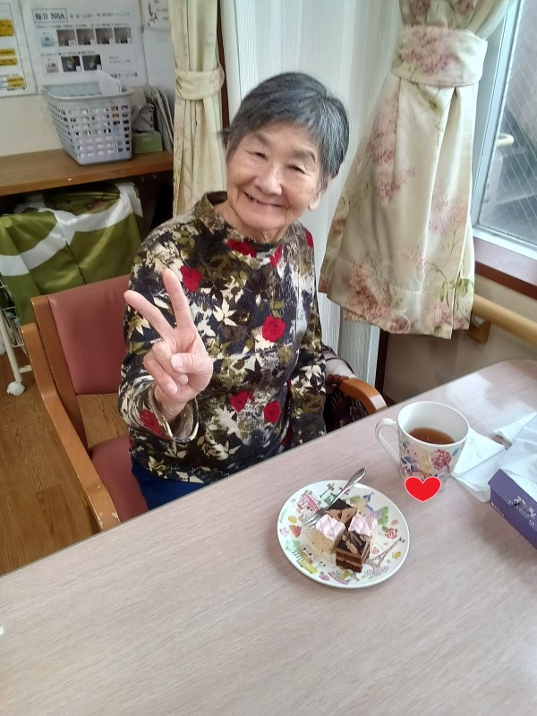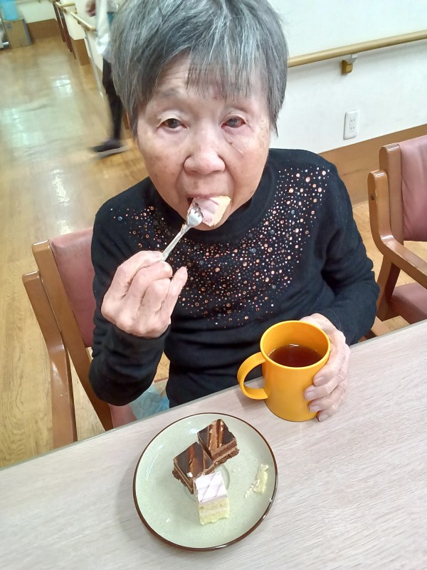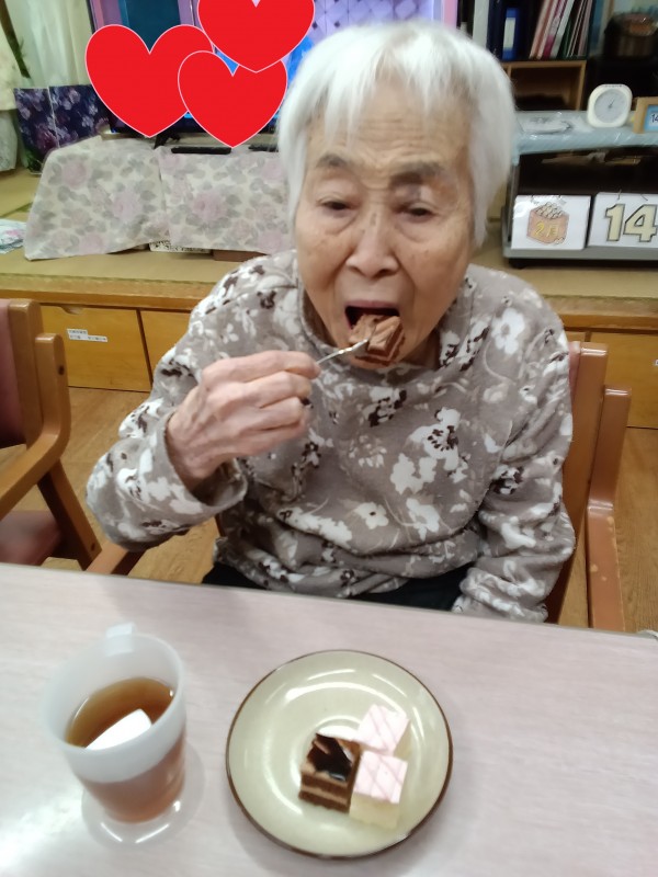 おやつの時間には、チョコレートとストロベリーケーキを召しあがっていただきました(^^♪