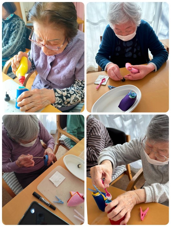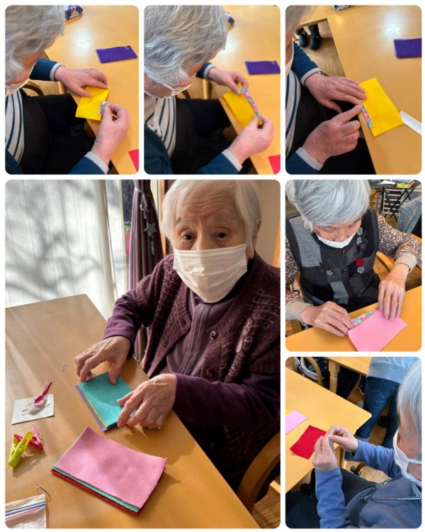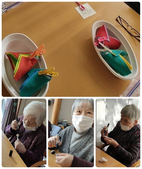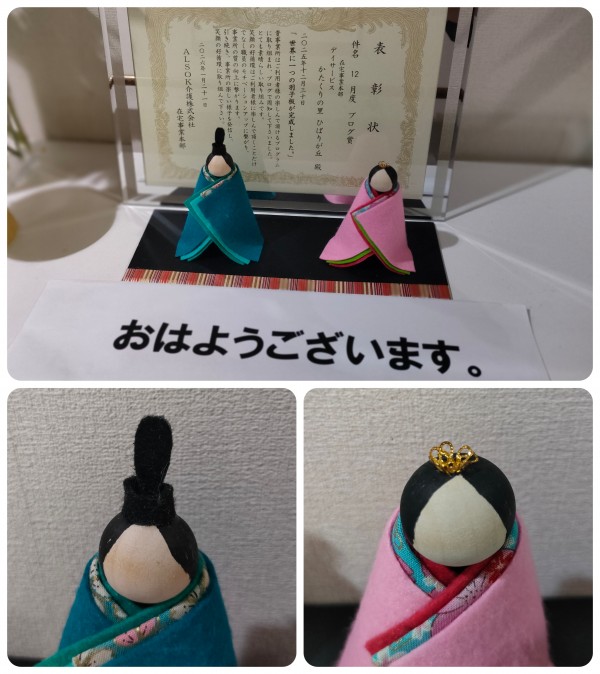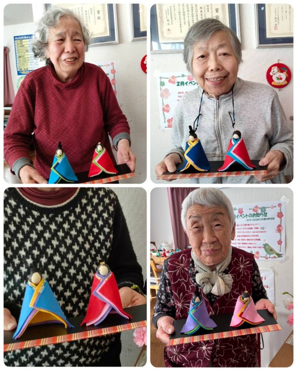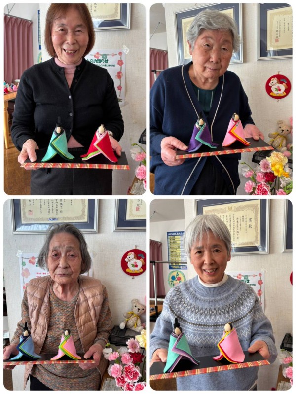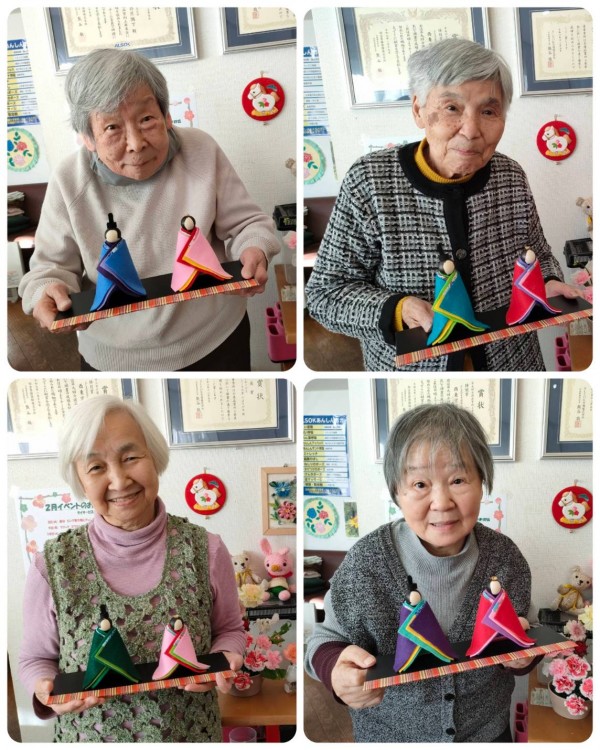 おひな様は赤色か桃色の2色ですが、お内裏様のカラーは豊富でしたので違いが出ましたね(*‘∀‘)